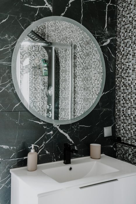 Bathroom 1 with shower, washbasin, WC and washing machine
